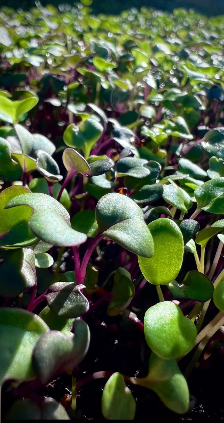 As a staple leafy green farm, your share will always include a fresh mix of baby greens, kale, arugula, and other specialty greens in season. You can also look forward to edible flowers, herbs, microgreens, and sprouts. Depending on the season, we’ll provide vegetables such as tomatoes, squash, radishes, beans, onions, and kohlrabi—always focusing on what grows best in our environment. We also grow strawberries as a seasonal fruit and plan to expand into more fruit varieties with your support. And of course, every week you’ll receive fresh herbs to round out your box.